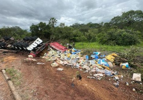 Carreta tomba na PI-140 em Floriano e motorista sofre apenas escoriações