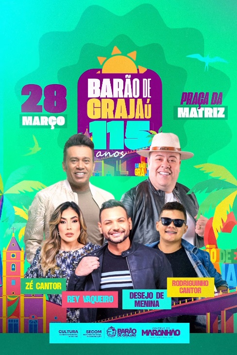 Barão de Grajaú divulga programação oficial dos 115 anos com grandes atrações musicais.A contagem regressiva chegou ao fim! A Prefeitura de Barão de Grajaú divulgou a programação oficial em comemoração aos 115 anos de emancipação política do município.