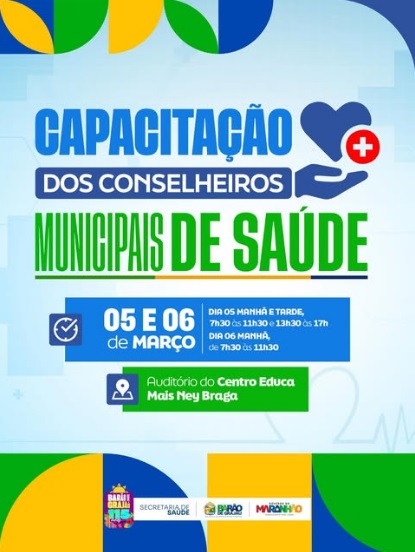 Barão de Grajaú realiza capacitação para Conselheiros Municipais de SaúdeO município de Barão de Grajaú promove, nos dias 05 e 06 de março, a Capacitação dos Conselheiros Municipais de Saúde. O encontro será realizado no Auditório do Centro Educa Mais Ney Braga.